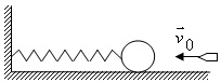 47. На гладком горизонтальном столе лежит шар массой M, прикрепленный к пружине жесткостью k. Другой конец пружины закреплен. В шар попадает пуля массой m, имеющая в момент удара скорость υ0 направленную вдоль оси пружины. Пуля застревает в шаре. Определите амплитуду колебаний шара после удара.